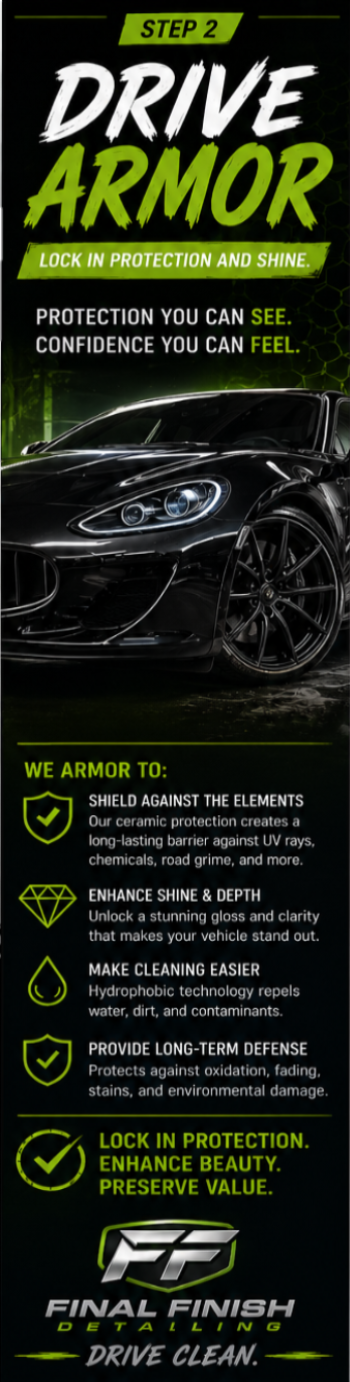 Final Finish Detailing LLC operates as a fully licensed and insured professional company, functioning year-round from a reputable facility. We offer clients consistent and dependable detailing solutions, ensuring they receive services they can trust.